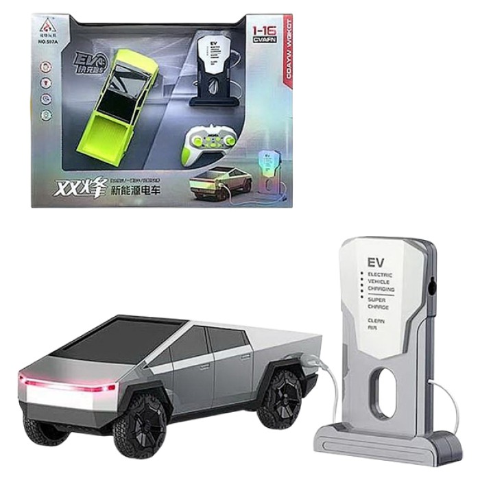 Особливості: - розміри машинки: 23.5х10.5х9.5 см; - машинка працює від вбудованого акумулятор, який підзаряджається від зарядної станції, яка повторює зовнішній вигляд зарядної станції для електроавтомобілів; - машинка має підсвічування, кольори та режими якого перемикаються з пульта; - іграшка має аудіоефекти звукових сигналів автомобіля, а також програє декілька динамічних мелодій; - колеса іграшки мають гумове покриття; - пульт керування машинкою працює від двох батарейок типу “АА” (не включені до набору); - машинку виконано з міцного та легкого пластику.