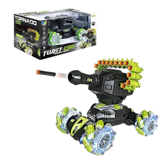 Танк на радіокеруванні – це сучасна іграшка, що поєднує в собі дві форми: бойову машину та швидкісне авто. Завдяки знімній башті танк легко трансформується у болід для перегонів назад. Іграшка працює від акумулятора 3.7 V, а керувати нею можна як пультом, так і спеціальним браслетом. Під час руху танк підсвічується та відтворює динамічні звукові ефекти, роблячи гру ще захопливішою. У комплект входять 20 м’яких патронів, що дозволяє влаштовувати ігрові битви та тренувати влучність.