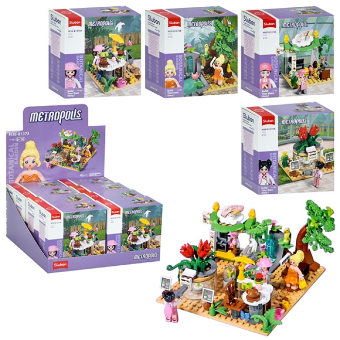 Особливості товару: - Серія: SLUBAN Рожева серія – Ботанічний сад. - Від 71 деталі у наборі. - Високоякісний пластик, сумісний з іншими конструкторами аналогічного типу. - Фігурка у комплекті. - 4 види сюжетів на вибір. - Яскрава подарункова коробка.