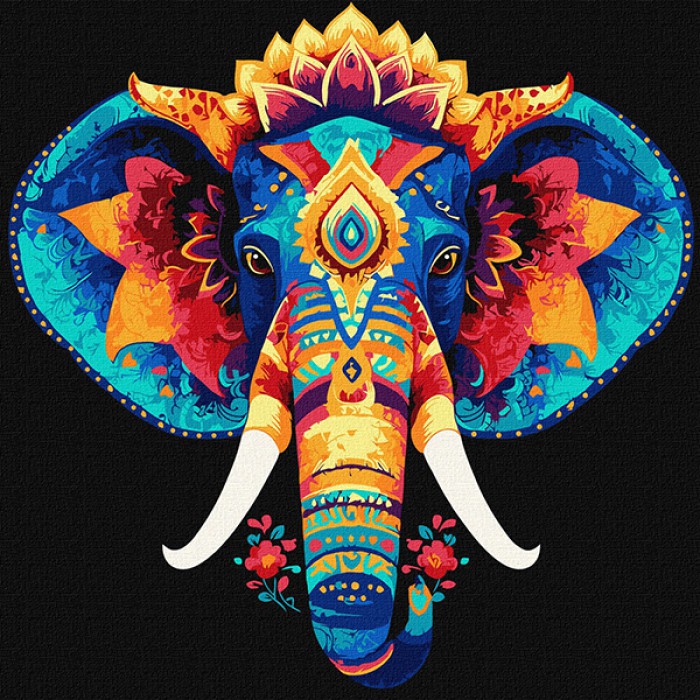 Картина за номерами 30*30см + фарби + пензель 2 шт з рамкою Загадковий слон
