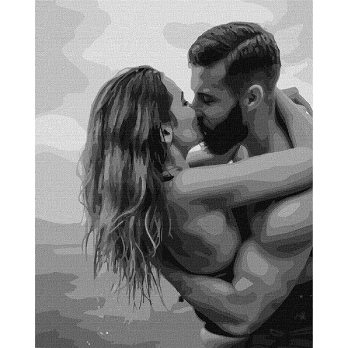 Картина за номерами 40*50см + фарби + пензель 3 шт з рамкою Поцілунок на узбережжі
