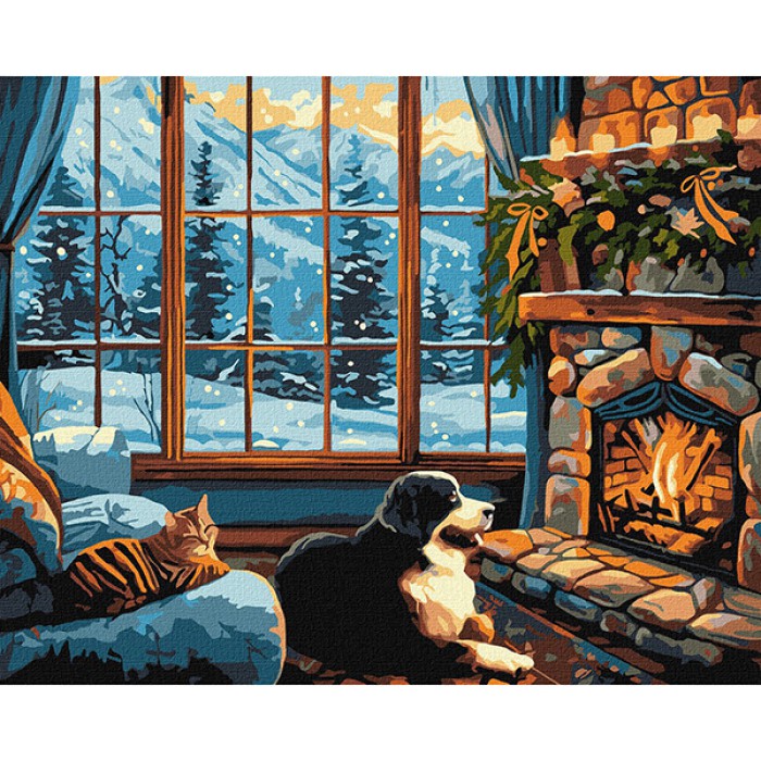 Картина за номерами 40*50см + фарби + пензель 3 шт з рамкою Тепло каміна