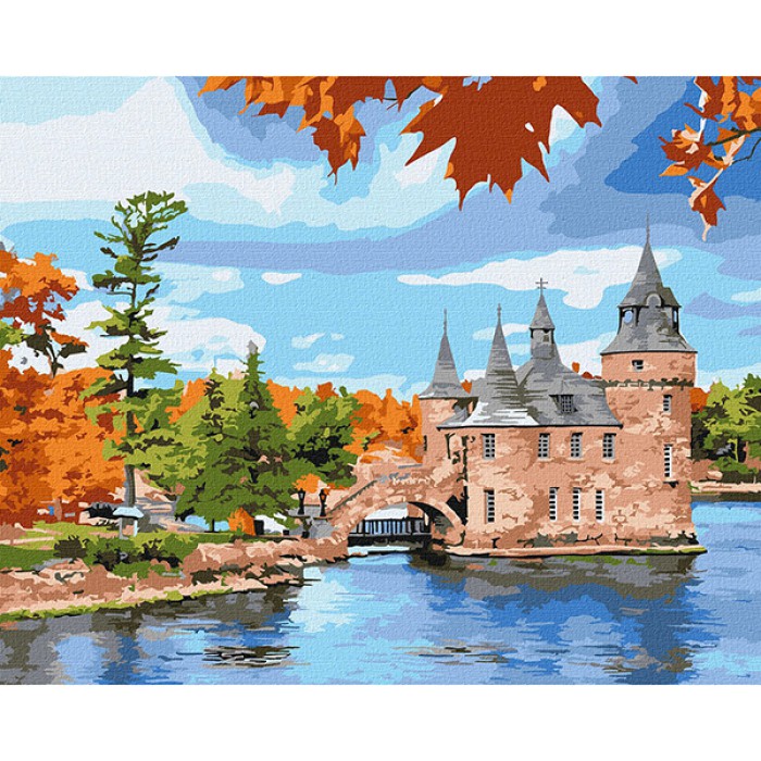 Картина за номерами 40*50см + фарби + пензель 3 шт з рамкою Замок на озері