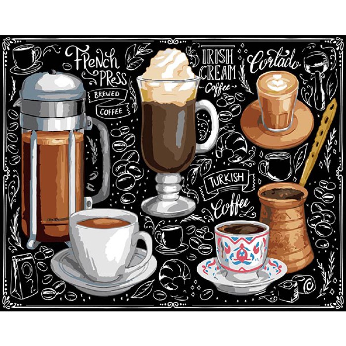 Картина за номерами 40*50см на чорному фоні Світ кави
