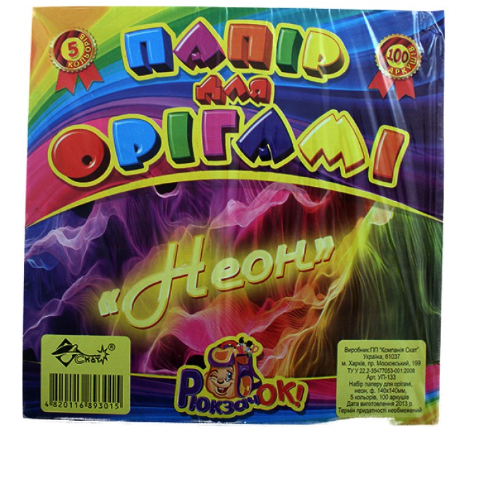 Папір для орігамі 5 кольорів 100 аркушів 140х140 НЕОН