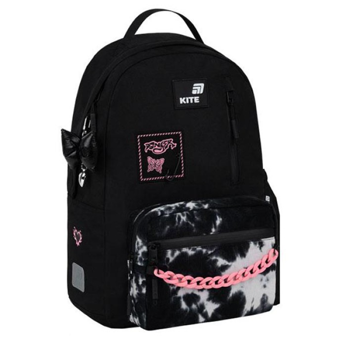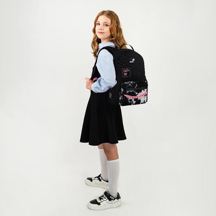 Рюкзак Kite K26-949M-1 поєднує в собі легкість, продуману організацію простору та крутий дизайн. Він стане незамінним помічником у школі та у повсякденних справах. Трендовий рюкзак ефектно доповнить стиль, подарує відчуття легкості та комфорту. Модель рекомендована для дітей віком від 9-12 років, на зріст від 130 см. Матеріали і фурнітура пройшли випробування на міцність і стійкість до зношування. Тканина не вигорає, довго зберігає первинний вигляд. Блискавки – якісні та надійні, працюють плавно. Бренд Kite — визнаний лідер у світі рюкзаків, який щороку отримує найпрестижніші нагороди: Вибір року, Вибір країни, Українська народна премія. Споживачі та експерти ринку обирають Kite за бездоганну якість, стиль, інноваційні рішення та ергономічний дизайн. Рюкзак зовні: - ортопедична дихаюча спинка Air Comfort знижує навантаження на спину та дарує відчуття комфорту; - широкі ущільнені лямки S-подібної форми – легенькі та зручні; - знімний нагрудний ремінь фіксує рюкзак в зручному положенні та допомагає рівномірно розподілити навантаження; - об'ємна передня кишеня на блискавці, всередині якої – кишеня для телефона з плюшем, а також – зручний органайзер для дрібниць та знімна ключниця; - 2 невеликі передні кишені на блискавці; - бічна кишеня на резинці для невеликого термоса або пляшечки з водою; - текстильна ручка-петля; - практичне посилене дно; - високоякісна фурнітура – надійні блискавки з водовідштовхувальним просоченням; - світловідбивні елементи для видимості на дорозі в темну пору доби; - декор: аплікація з комбінованих матеріалів, об'ємний друк, кишеня з вельвету, пластиковий декоративний ланцюжок, м'який брелок-підвіска з комбінованих матеріалів. Рюкзак всередині: - просторе основне відділення; - зручні роздільники для книжок та зошитів з фіксуючою резинкою – для ідеальної організації простору та оптимального збалансування ваги вмісту; - кишеня для планшета; - міцна брендована підкладка.