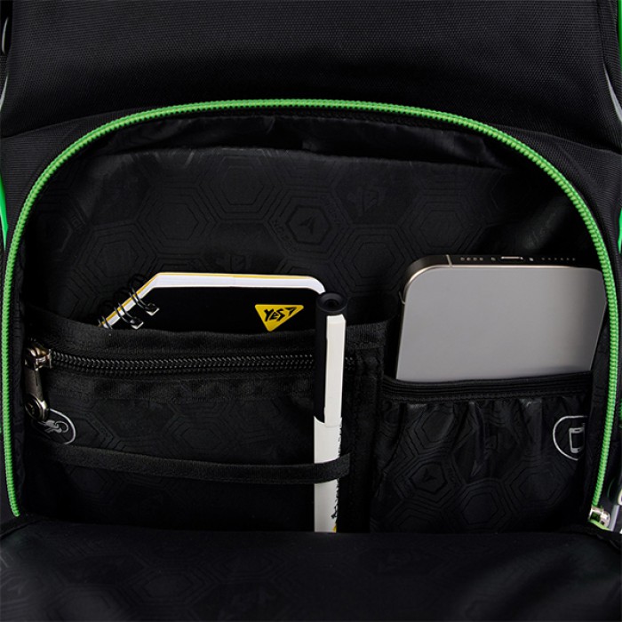 Зручні деталі внутрішньої організації: - внутрішній органайзер для шкільного приладдя; - кишеня для телефону - відділ для гаджетів з захисною флісовою підкладкою; - картка-вкладиш для внесення персональних даних учня; - позначки на кишенях для внутрішньої навігації; - брендована міцна підкладка. Розмір та характеристики: - Розмір за сіткою: S - Розмір: 37 х 30 х 14 см - Об'єм: 15,5 л - Вага: 0,85 кг (+/- 10%) - Рекомендовано для дітей зростом від 115 см до 130 см. Рюкзак без додаткової комплектації. Наповнення на фото — демонстраційне.