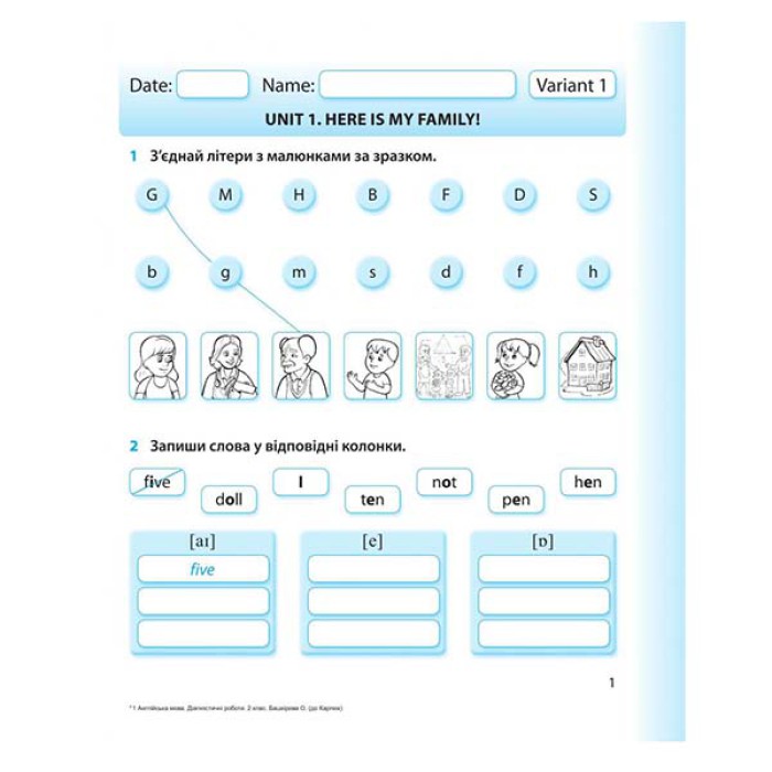 НУШ 2 кл. Англійська мова Діагностичні роботи до підручника Карпюк О.Д.