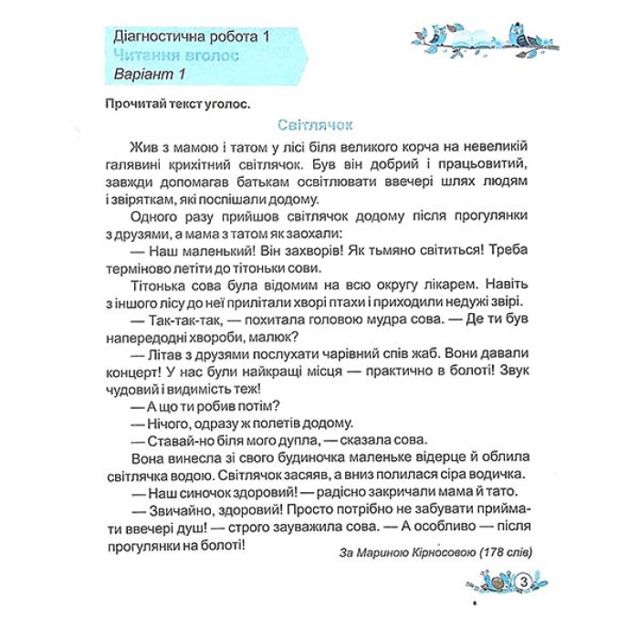 НУШ 3 кл. Читання Діагностичні роботи за програмою Савченко О.