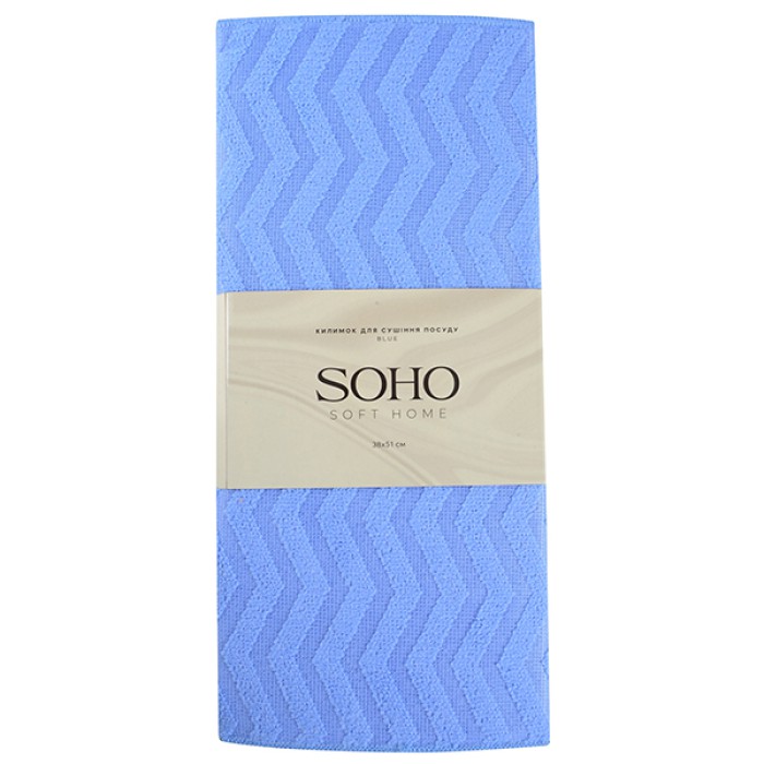 Килимок для сушіння посуду 38х51 см "Blue" торгової марки SOHO виготовлений зі 100% поліестеру та губки, що забезпечує миттєве вбирання вологи та швидке висихання. Має дуже високу зносостійкість і довговічність. Килимок можна розташовувати на столі або стільниці, а також використовувати як вкладку в сушарці для посуду.