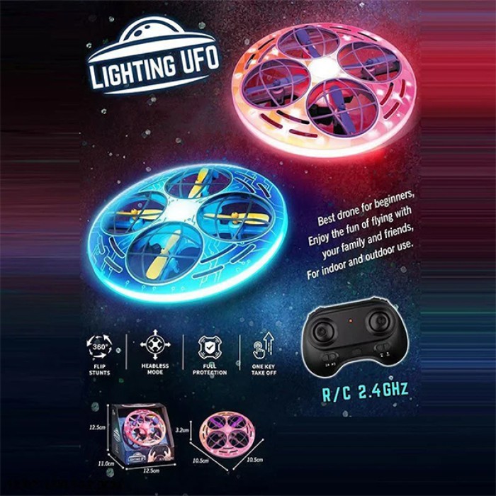 Ця літаюча тарілка дарує справжнє задоволення від польотів і дітям, і дорослим! Яскраве LED-підсвічування робить політ особливо ефектним у темряві, а зручний компактний розмір дозволяє запускати модель як удома, так і на вулиці. Пропелери захищені м’якими решітками, що підвищує безпечність гри, а автоматичний зліт забезпечує легкий