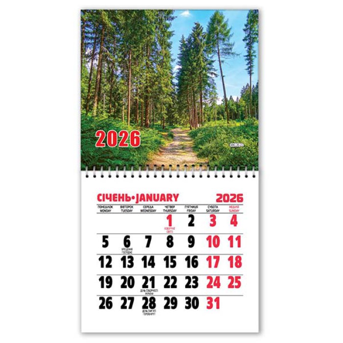 Календар 2026 на магніті Ліс