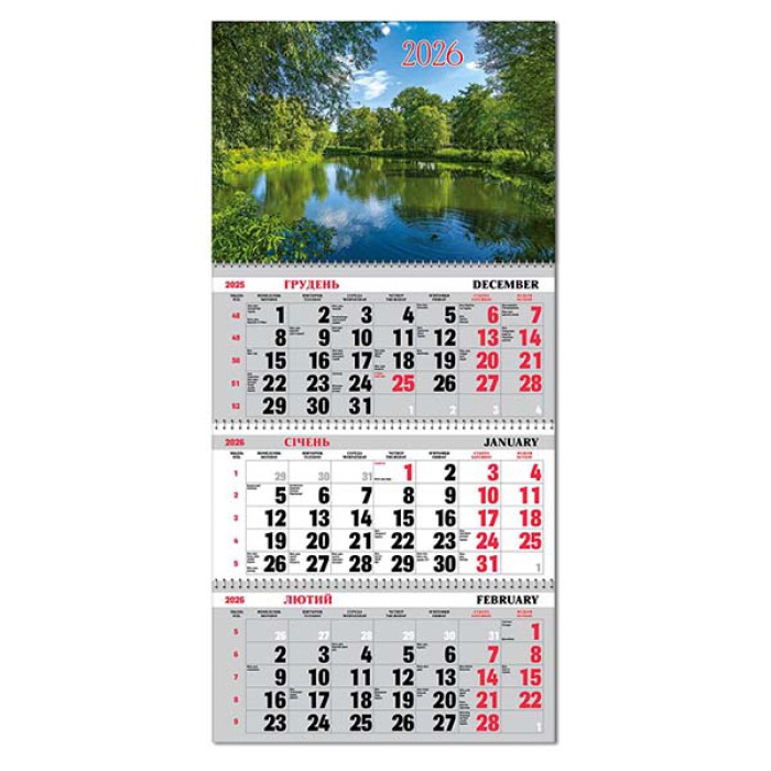 Календар 2026 року квартальний з бігунком Озеро
