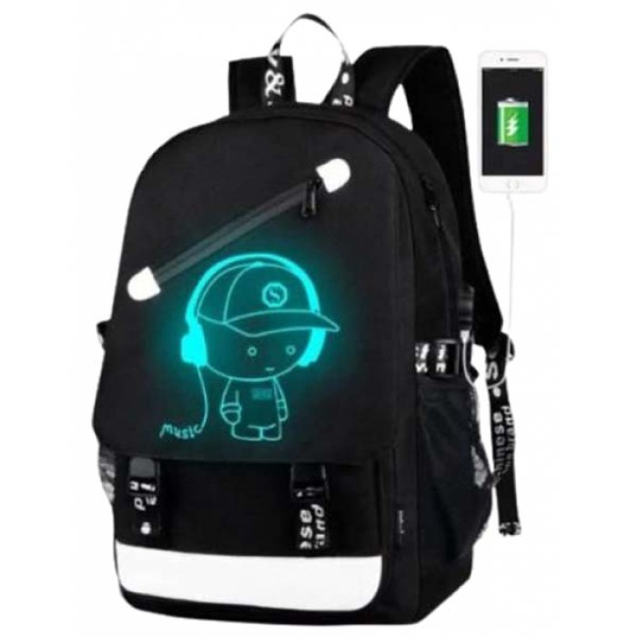 Удобный и стильный рюкзак 42*28*16 см обрадует вас своим качеством и функциональностью. Эта модель считается универсальной и отлично подойдет как для школы, пеших прогулок по городу, так и для поездок и занятий спортом. Рюкзак черный с белым рисунком. Рюкзак можно брать с собой в школу, на работу, обучение, путешествие, разные кружки, тренировки или повседневные прогулки. Достоинства: - клапан для проволоки наушников - USB разъем на наружной части рюкзака; - отдел для ноутбука имеет специальную защиту. - вместительный - водоотталкивающий материал Объем рюкзака: 19 л.