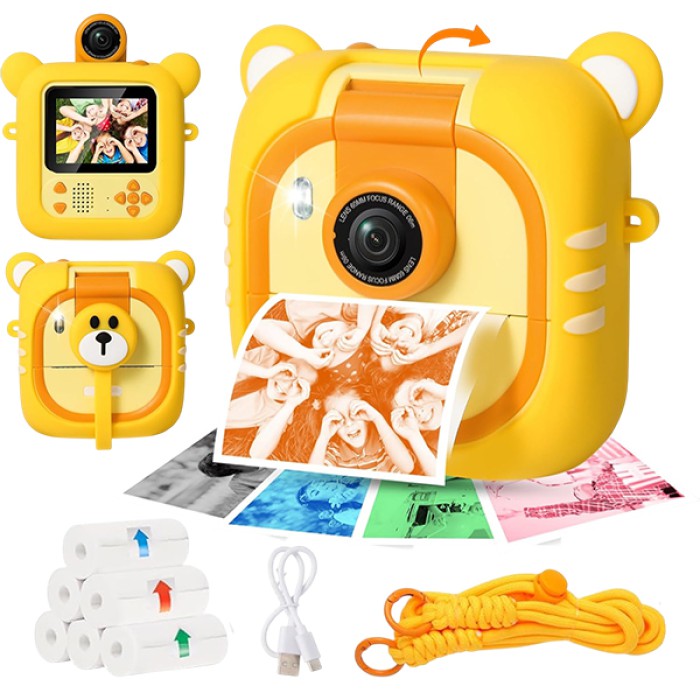 Переваги: 1) Дитячий фотоапарат стимулює творче мислення й фантазію, даючи змогу дітям висловлювати свою індивідуальність через світлини. 2) Миттєвий друк: Вбудована функція миттєвого друку дає змогу дітям відразу бачити результат своєї роботи, створюючи унікальні фотографії. 3) Наявність стикерів, рамок і малюнків у фотоапараті додає інтерактивності, даючи змогу дітям декорувати свої знімки та розвивати творчі навички.