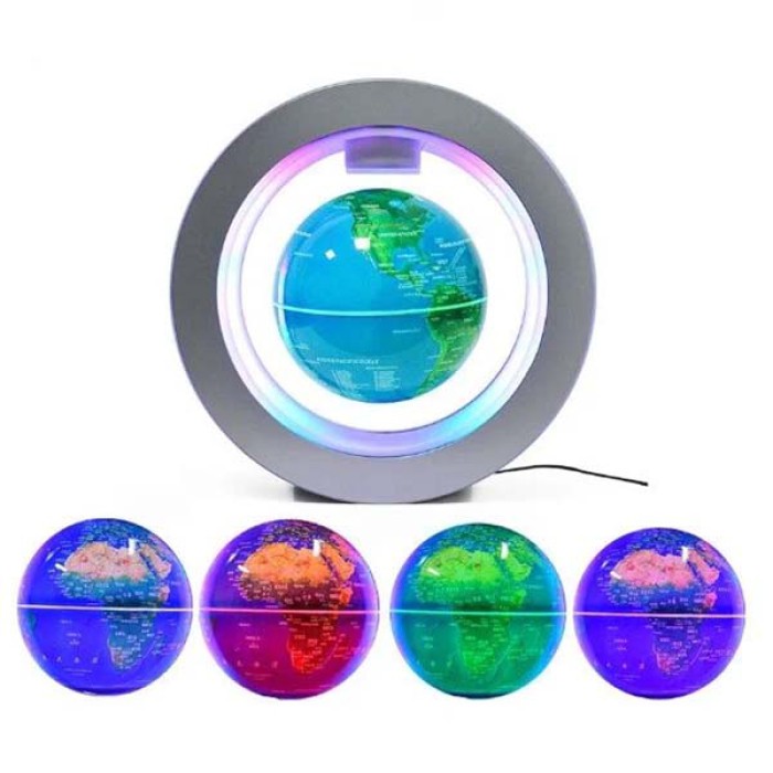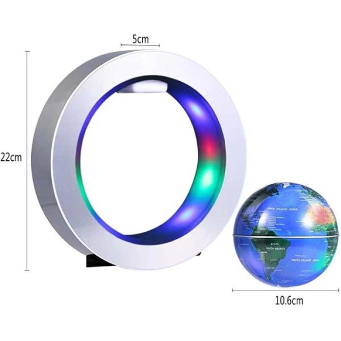 Интерактивная лампа, цветная подсветка (платформы+глобуса), левитирующий глобус – самый оригинальный подарок на любой праздник! Гаджет оценят не только лишь дети, да и взрослые. Выполнена в виде платформы с цветной подсветкой и глобуса, который может не только левитировать, но вращаться вокруг своей оси. Как включить лампу: 1. Держите глобус северным полюсом вверх, используйте вспомогательный инструмент (имеется в комплекте) между глобусом и рамкой. 2. Сначала медленно выньте из рук глобус, затем извлеките инструмент. Теперь глобус будет левитировать сам по себе. 3. Используйте свою руку, медленно поворачивая глобус, вы увидите, что глобус будет вращаться. 4. Глобус можно вращать по часовой стрелке, а также против часовой стрелки. Это зависит от направления поворота. Особенности: - оригинальная лампа, состоящая из 2 частей: платформы и глобуса; - глобус левитирует и вращается вокруг своей оси; – вспомогательный инструмент для создания электромагнитного поля; - яркая цветная подсветка платформы и глобуса; – диаметр глобуса составляет 10.6 см; - размеры лампы – 22х10.6х22.5 см; - лампа работает от сетевого питания; - выполнена из пластика.