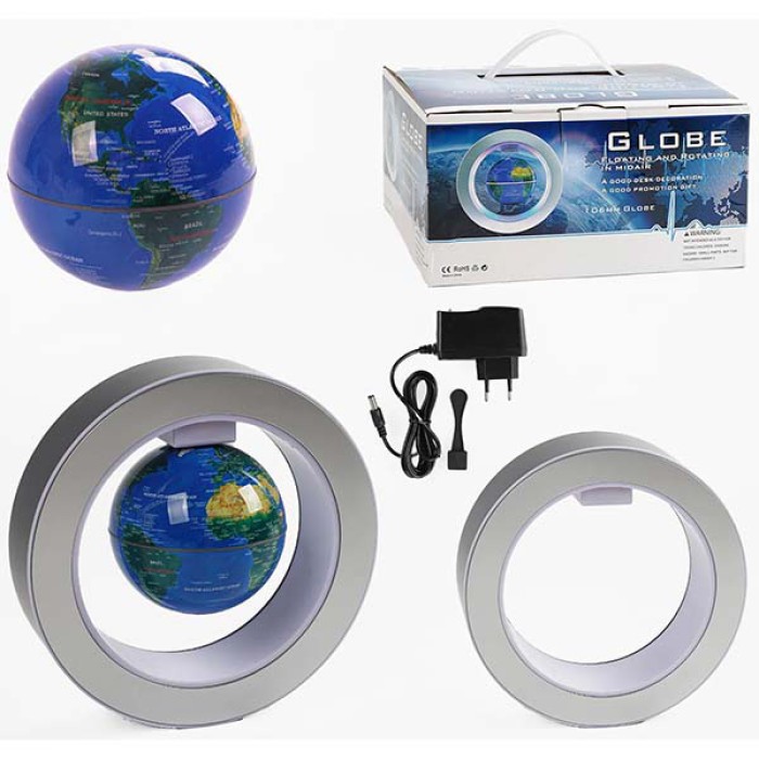 Интерактивная лампа, цветная подсветка платформы, левитирующий глобус – самый оригинальный подарок на любой праздник! Гаджет оценят не только лишь дети, да и взрослые. Выполнена в виде платформы с цветной подсветкой и глобуса, который может не только левитировать, но вращаться вокруг своей оси. Как включить лампу: 1. Держите глобус северным полюсом вверх, используйте вспомогательный инструмент (имеется в комплекте) между глобусом и рамкой. 2. Сначала медленно выньте из рук глобус, затем извлеките инструмент. Теперь глобус будет левитировать сам по себе. 3. Используйте свою руку, медленно поворачивая глобус, вы увидите, что глобус будет вращаться. 4. Глобус можно вращать по часовой стрелке, а также против часовой стрелки. Это зависит от направления поворота. Особенности: - оригинальная лампа, состоящая из 2 частей: платформы и глобуса; - глобус левитирует и вращается вокруг своей оси; – вспомогательный инструмент для создания электромагнитного поля; - яркая цветная подсветка платформы; – диаметр глобуса составляет 10.6 см; - размеры лампы – 22х10.6х22.5 см; - лампа работает от сетевого питания; - выполнена из пластика.