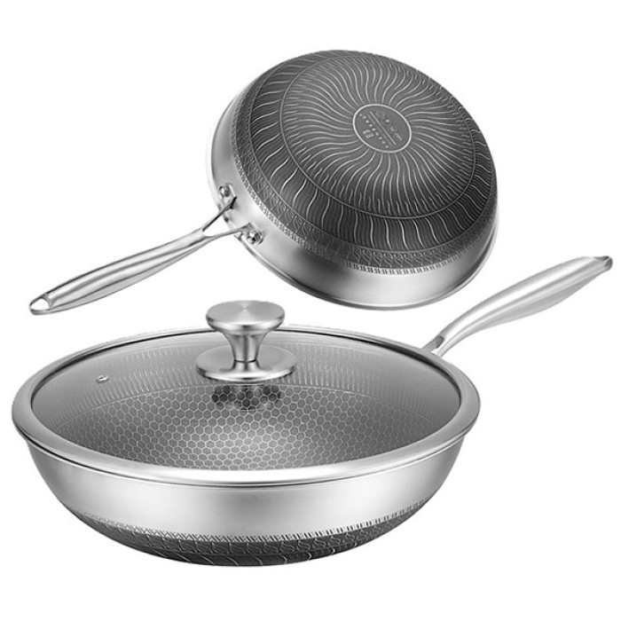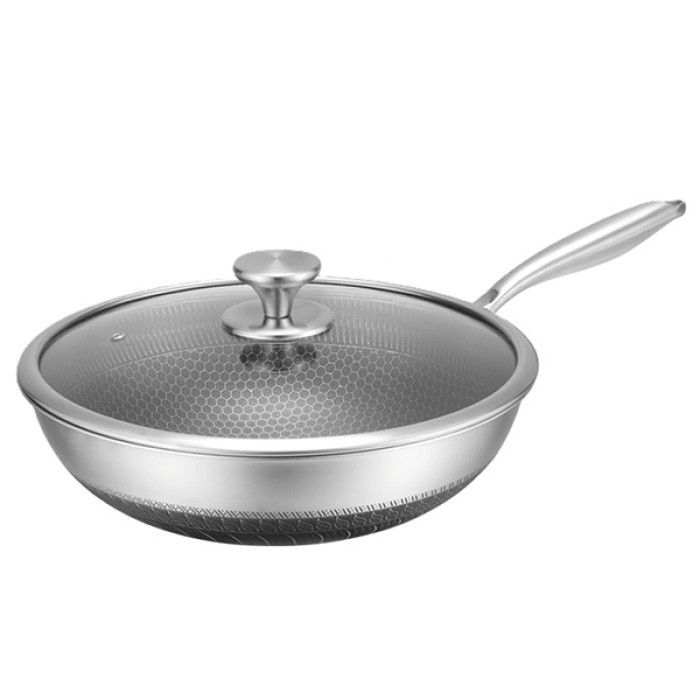 Профессиональная глубокая сковорода WOK с крышкой Edenberg станет незаменимым помощником на кухне. Корпус состоит из трех слоев: 1) Внутренний — текстурированная нержавеющая сталь со стойким к царапинам антипригарным покрытием. 2) Средний – алюминий для лучшего распределения температуры. 3) Наружный – нержавеющая сталь с магнитными свойствами. Профессиональная сковорода сочетает в себе практичность и качество, она станет Вашим помощником на кухне. Вкус готовящейся пищи зависит не только от точности соблюдения рецепта и умения хозяйки, но и от качества посуды. Характеристики: - Диаметр – 28 см. - Высота – 8.5 см. - материал - антипригарное "сотовое" покрытие. - Особенности – 3-х слойное покрытие нержавеющей стали. Особенности: - ручка не нагревается, имеет отверстие для подвешивания. - Подходит для использования в духовке до 220°С. - подходит для всех источников тепла, включая индукцию. - термоаккумулирующее дно равномерно распределяет тепло и сковорода хорошо прогревается. - Сковорода очень легко моется и по сравнению с собратьями долговечна.