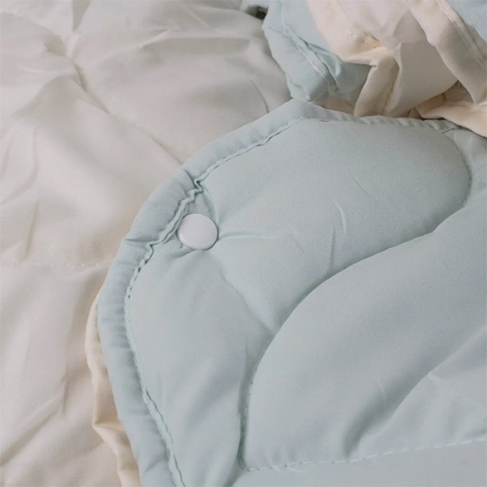 1) 2 в 1 – Вона складається з двох ковдр різної щільності (150 г/м² і 250 г/м²), скріплені кнопками, які можна використовувати окремо або разом