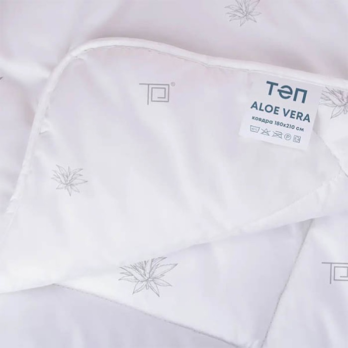 Вишукана ковдра з антиалергенним волокном, просоченим екстрактом Aloe Vera. 7 причин полюбити цю ковдру: 1) не викликає алергії - тому користуватися можуть усі, 2) наповнювач з волокном з екстрактом Aloe Vera для комфортного і міцного сну, 3) бамбукове волокно забезпечує відчуття свіжості вночі та є ідеальним для літа, 4) наповнювач рівномірно розподілений по всій ковдрі та не збивається - достатньо легко потрусити ковдру для відновлення об'єму, 5) м'яка ковдра повторює форму тіла і чудово зігріває, 6) простота у догляді: можна прати в пральній машині та сушити в сушильній машині, 7) виготовляється в Україні з турботою про здоровий сон і дотриманням європейських стандартів якості. Зовнішня тканина – високотехнологічна мікрофібра Membrana. З внутрішнього боку ця тканина оброблена ультразвуковим коландером, що створює ефект мембрани. Особливість мембрани – пропускати всередину виробу трохи більше повітря, ніж випускати назовні. Так виникає повітряний ефект, який робить ковдри та подушки більш об'ємними, легкими, ніжними. Membrana – це тканина нового покоління, оксамитова, еластична, ніжна і дуже міцна. Наповнювач з просоченням Aloe Vera пристебаний до зйомного чохла, а всередині подушки – поліефірне силіконізоване волокно Double Air, антиалергійне, пружне, відмінно відновлює форму. Ковдри з колекції Nature від ТЕП – це сила природного відновлення для здорового комфортного сну.