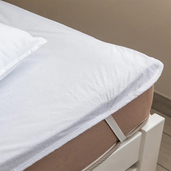 Верхнє покриття наматрасника - гіпоалергенна та приємна на дотик махрова тканина. Простирадло-протектор фіксується на матраці за допомогою широких кутових гумок. Таке кріплення дозволяє швидко і легко одягати й знімати виріб за потреби.
