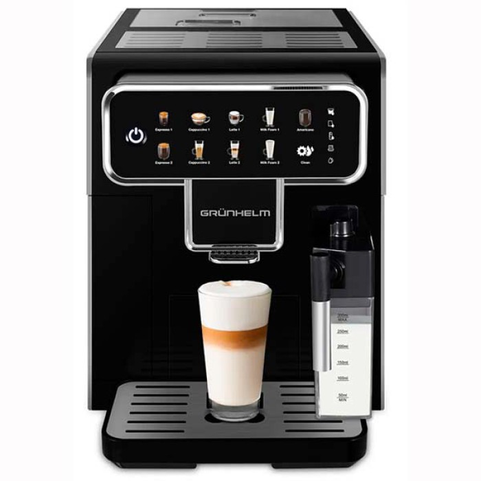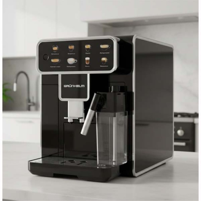 Автоматична кавомашина GACM01 Grunhelm - Інтелектуальний датчик рівня води + знімний резервуар для води. Універсальна система заварювання при високій температурі та високому тиску. Знімна повністю автоматична молочна система. Знімний піддон для води та контейнер для кавової гущі, який легко чистити. Термоблоковий нагрівальний котел +NTC інтелектуальний контроль температури, швидкий та ефективний у будь-який час для виробництва високоякісної кави.
