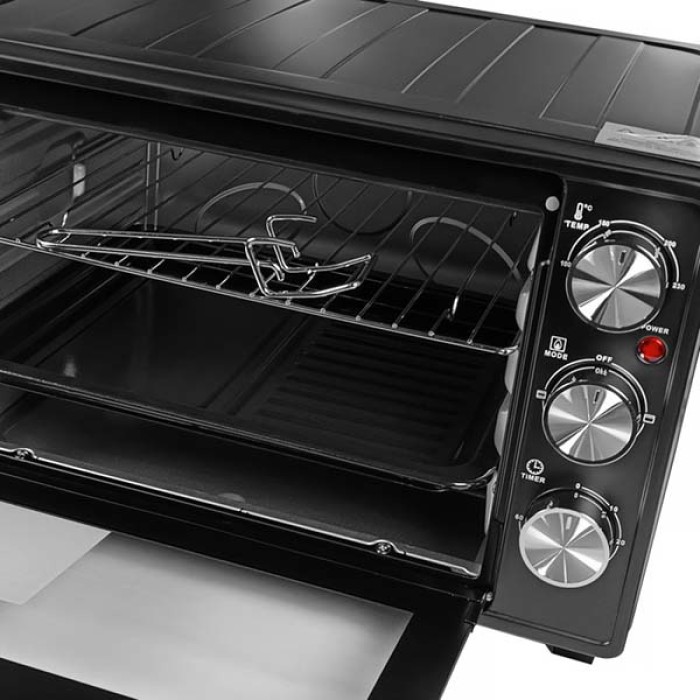 Потужність електропечі становить 1600 Вт, а термостат дозволяє проводити регулювання температури до 230 °С.