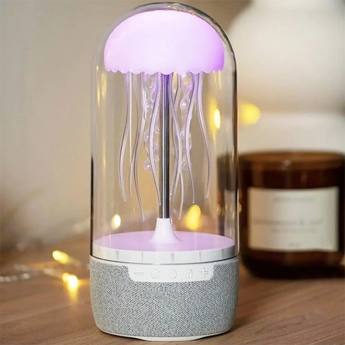 Переваги та ключові можливості: - Колонка та нічник в одному пристрої. - Декоративна медуза з м’яким RGB-підсвічуванням. - Чисте стереозвучання потужністю до 10 Вт. - Підключення через Bluetooth 5.2, TF-карту, AUX, USB Type-C. - Працює від вбудованого акумулятора (до 6 годин). - Кілька режимів зміни кольору та швидкості руху медузи. - Компактний і стильний дизайн, що підходить для будь-якого інтер’єру.