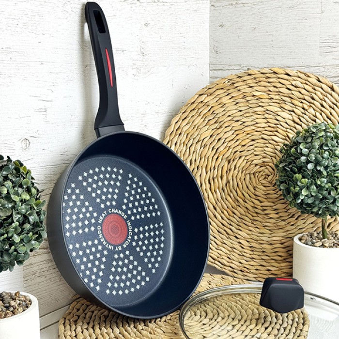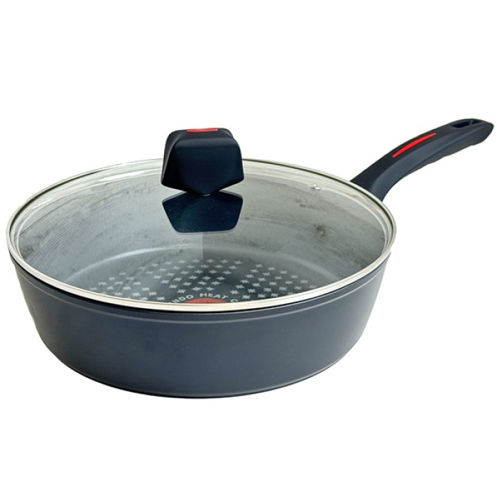 Основні характеристики: - Матеріал: алюміній. - Діаметр: 24 см. - Висота: 6,3 см. - Товщина стінок: 2.7/4.0 мм. - Сумісність: усі типи плит, включно з індукційними. - Серія: Intrendo Black Space.