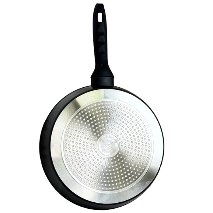 Основні характеристики: - Матеріал: алюміній. - Діаметр: 28 см. - Висота: 6,8 см. - Товщина стінок: 2.7/4.0 мм. - Сумісність: усі типи плит, включно з індукційними. - Серія: Intrendo Black Space.