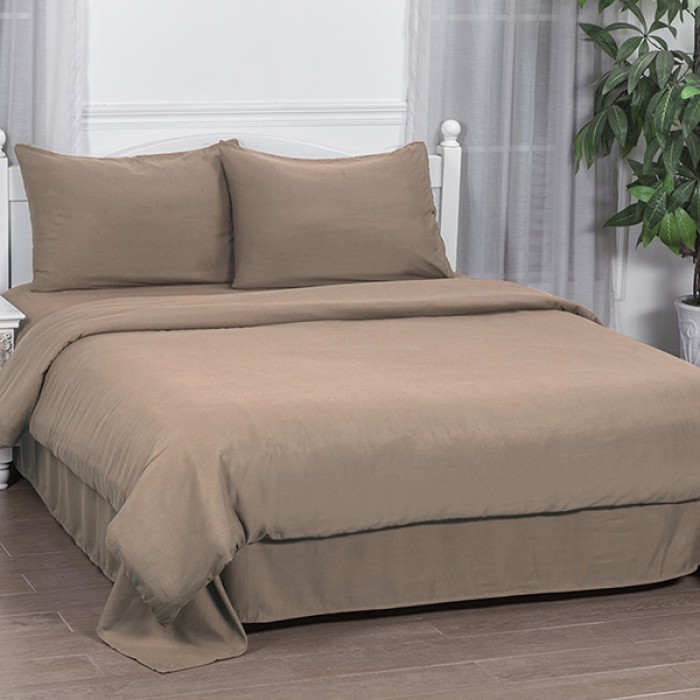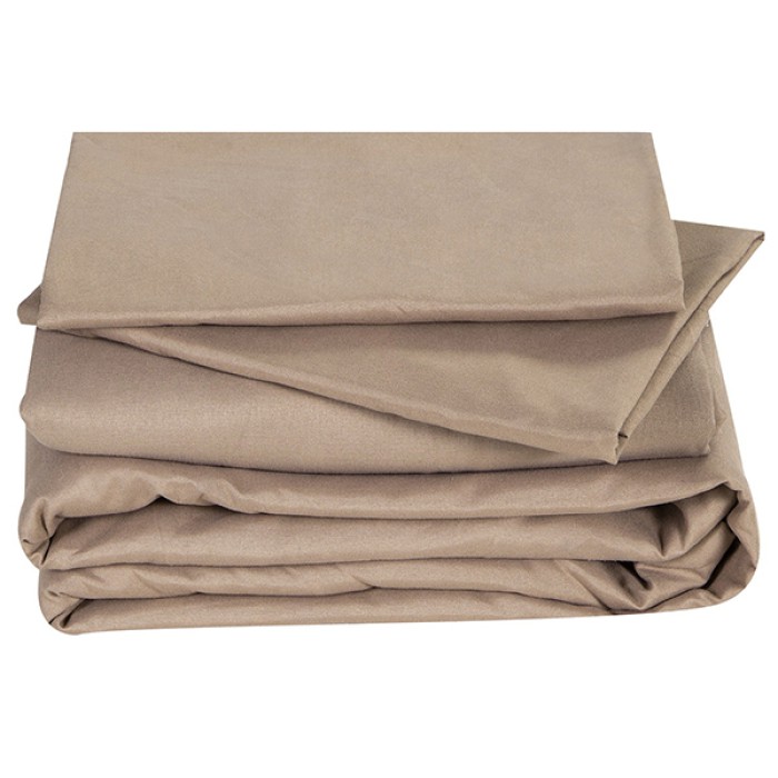 Характеристики: - Матеріал: поліестер 100%. - Колір: мокко. - Підковдра: застібка на блискавці. - Склад комплекту: простирадло 200х220 см – 1 шт, підковдра 180х220 см – 1 шт, наволочка для подушки 50х70 см – 2 шт.
